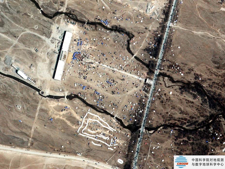 灾后避难所-马场帐篷〔由中国科学院对地观测与数字地球科学中心拍摄〕