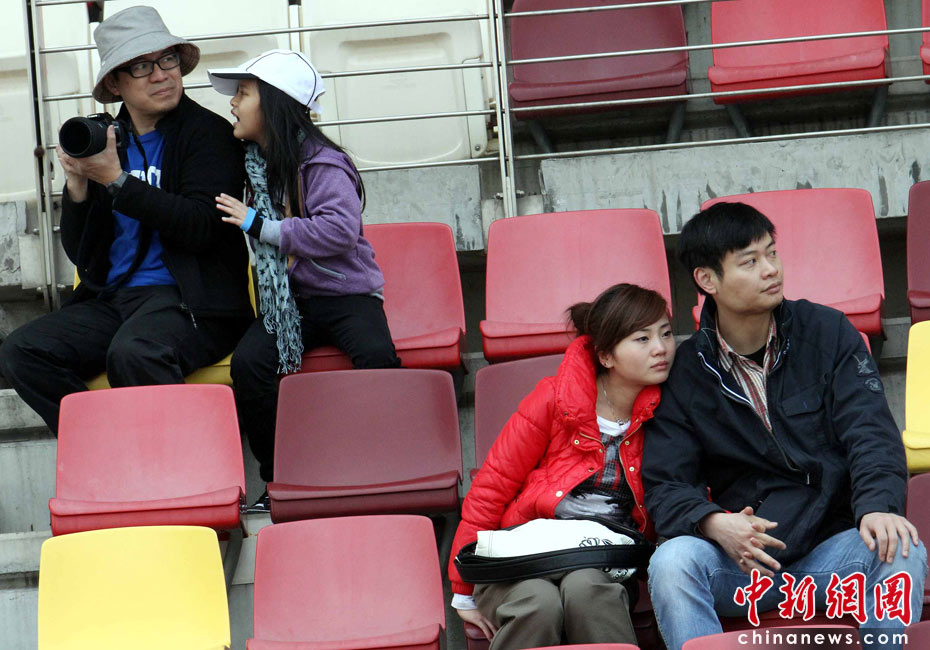 4月16日,2010国际汽联F1世界锦标赛上海站在上海国际赛车场开始车手第一、第二次练习赛。到场观战的中国观众既有情侣也有父女。中新社记者 任晨鸣 摄