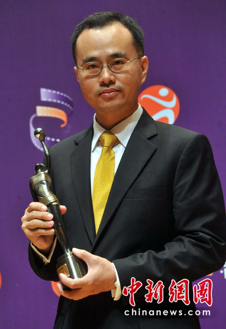 4月18日晚,“第二十九届香港电影金像奖”颁奖典礼在香港文化中心大剧院隆重举行,导演张经纬凭执导电影“音乐人生”夺得新晋导演奖项。中新社发 邓庆乐 摄