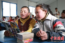 4月18日,70多名孩子在地震四天后重新走进了课堂,玉树州孤儿学校成为了地震灾区第一所复课的学校,刚完成帐篷搭建的青海省玉树藏族自治州第一民族中学3个年级的学生也开始复课。青友 摄