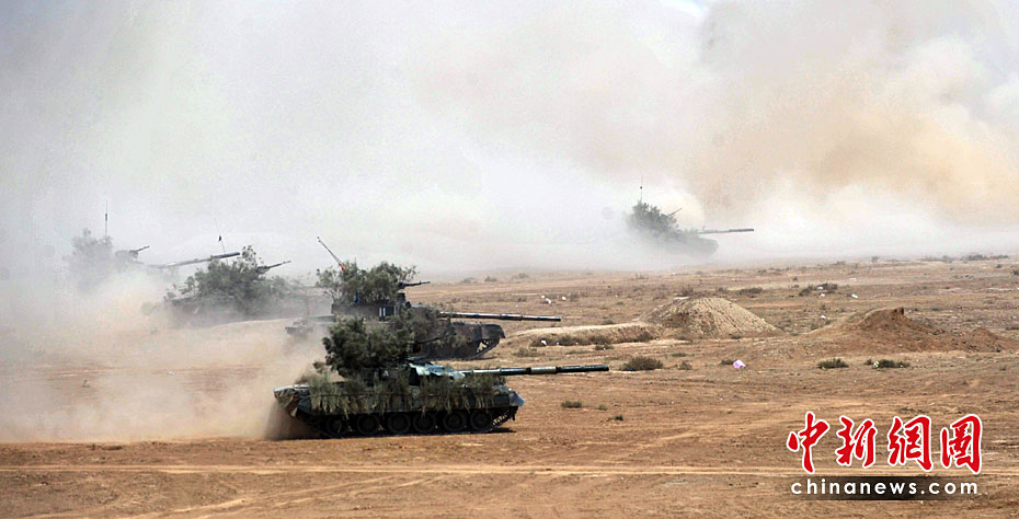 巴基斯坦军队4月18日出动战机、坦克和重型火炮,在靠近印度边界的东部沙漠地区举行“新决心—3”军事演习。图片来源:中国新闻网