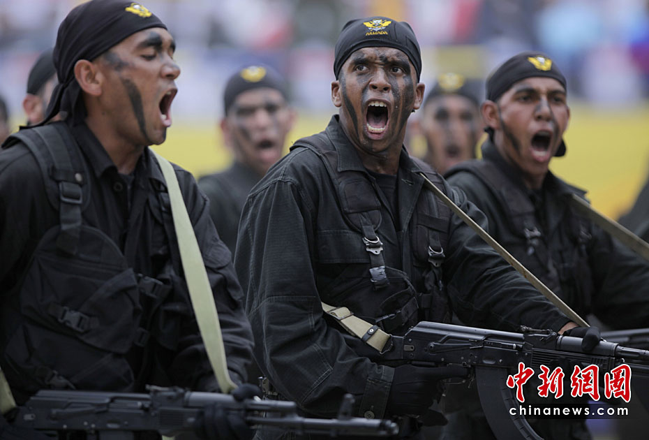 委内瑞拉首都加拉加斯19日举行盛大游行活动,纪念反殖民统治争取独立的斗争开始200周年。图片来源:中国新闻网