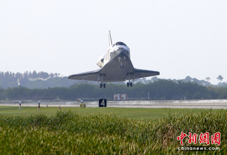 美国发现号航天飞机于当地时间4月20日成功降落在佛罗里达州肯尼迪航天中心,结束了为期15天的国际空间站建设之旅。图片来源:中国新闻网