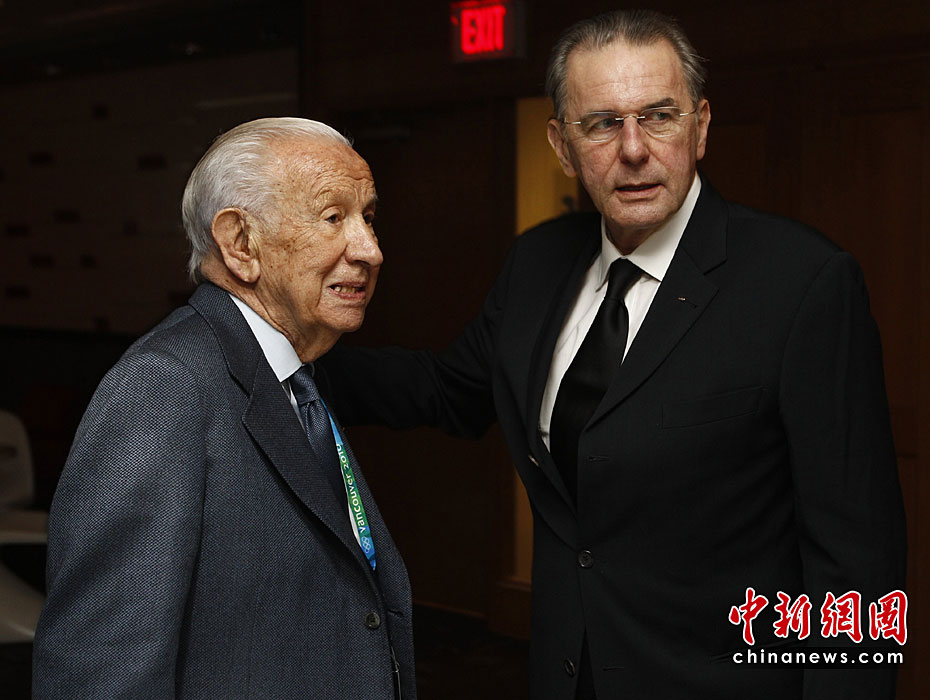 图为2010年2月12日,萨马兰奇与罗格在加拿大温哥华冬奥会上会面。