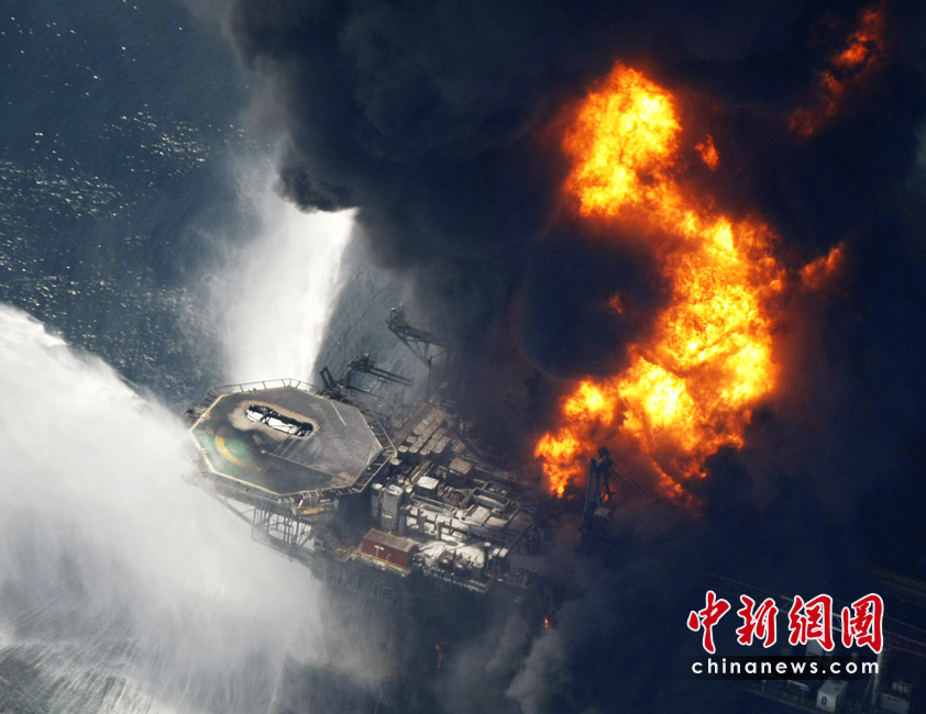 4月21日,美国路易斯安那州一处海上钻井平台发生爆炸,造成至少11人失踪、7人重伤。这起爆炸发生在20深夜,但直到21日中午,爆炸引起的大火仍在熊熊燃烧。目前钻井平台已严重倾斜超过70度,随时可能倾覆入海。