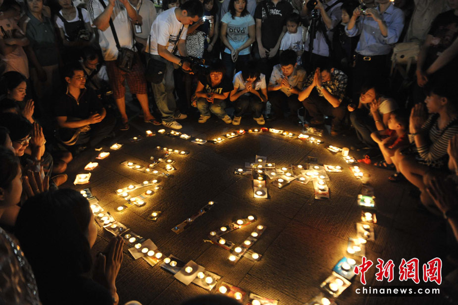 4月21日晚,上千名广西壮族自治区首府南宁市的市民,聚集在南宁市民族广场,哀悼玉树地震的死难同胞。中新社发 蒋雪林 摄