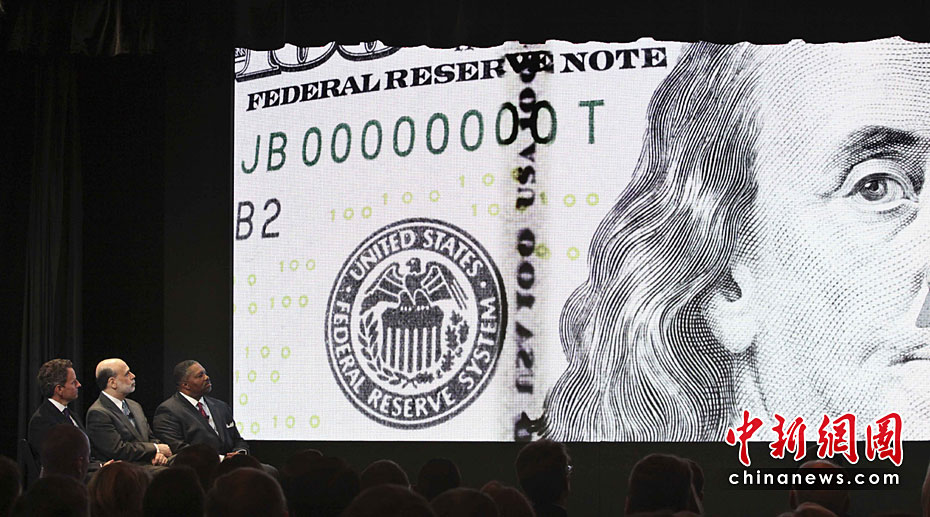 4月21日,美国财政部和美联储共同发布新版100美元面值的纸币票样。此次发行新版百元美钞旨在防范假钞,同时,老版美元仍将继续流通。图片来源:中国新闻网