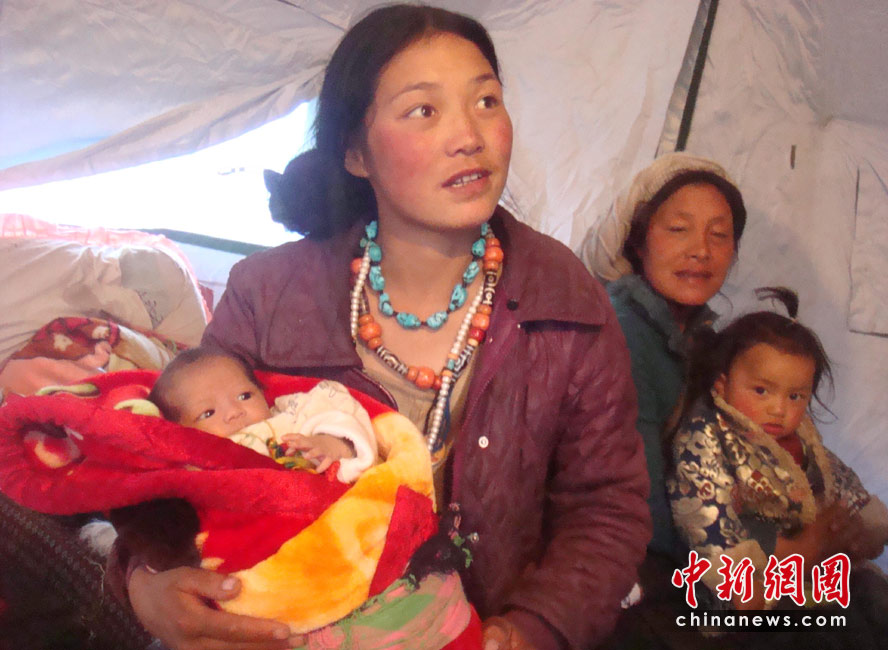 襁褓中这位还没有取名的藏族婴儿,堪称玉树地震灾区最令人爱怜的藏族小婴儿——出生第十五天就遭遇到青海玉树强烈地震,妈妈和多位家人不幸罹难。如今小婴儿由幸存的姑妈呵护着,栖身在第二炮兵总医院医疗队的救灾帐篷里。中新社发 贾国荣 摄