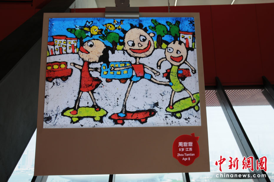 4月23日,上海世博会举行第三场试运行,入园观众达到10万名。图为中国馆内,展出的一组“童画”。