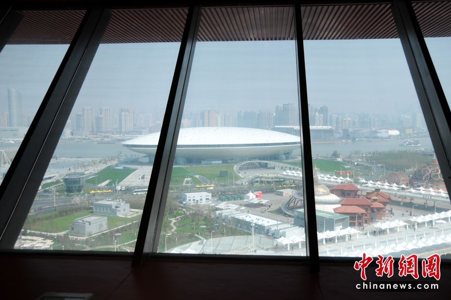 4月23日,上海世博会举行第三场试运行,入园观众达到10万名。图为在中国馆49米顶层观看世博文化中心。