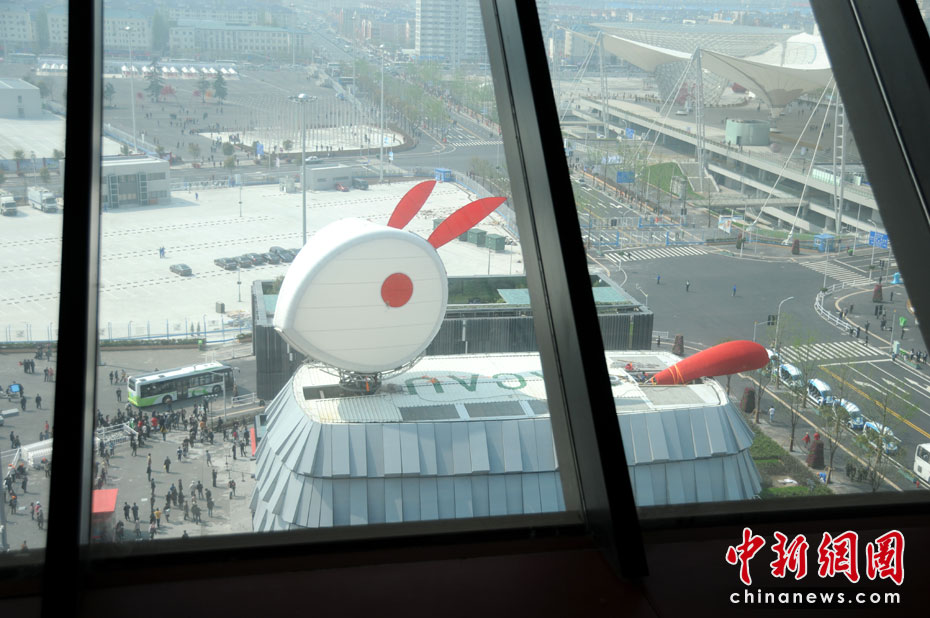 4月23日,上海世博会举行第三场试运行,入园观众达到10万名。图为在中国馆49米顶层观看澳门馆。