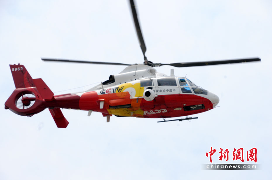 4月23日,上海世博会举行第三场试运行,入园观众达到10万名。图为央视航拍直升机飞机。