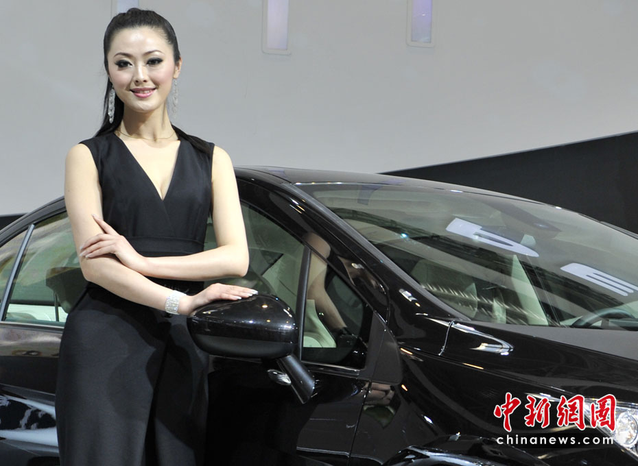 “第十一届北京国际车展”是名车新品抢先亮相的舞台,也成了车模们争奇斗艳的场所,参观者在车展中可以享受两道视觉大餐。中新网记者 金硕 摄