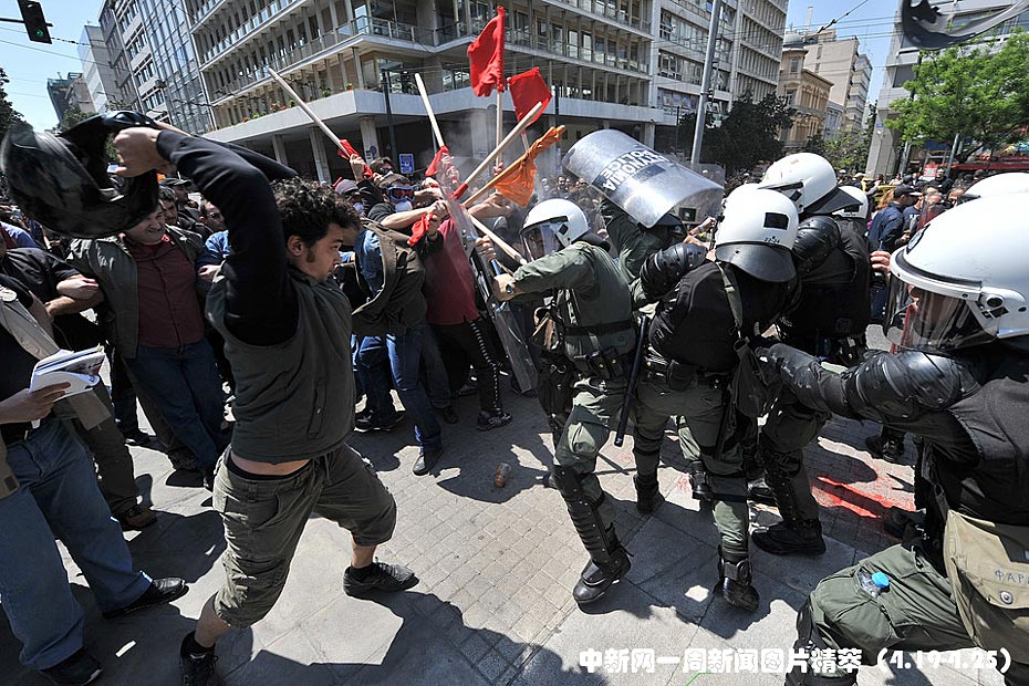 周四(22日),希腊示威者与防暴警察在希腊首都雅典发生激烈冲突。