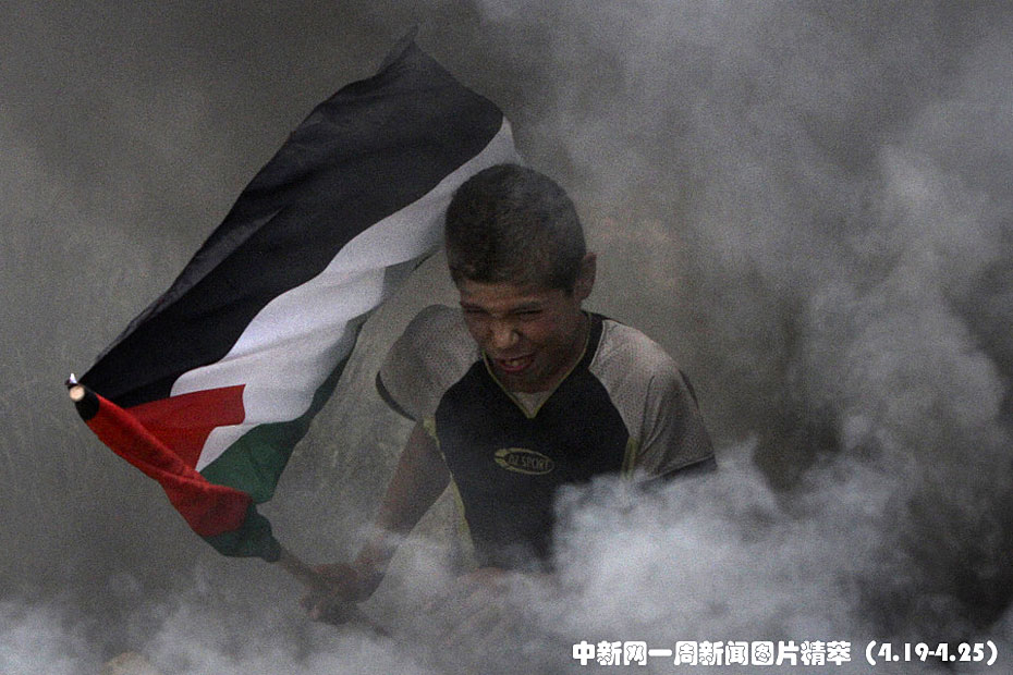 周五(23日),巴勒斯坦民众手举国旗抗议犹太定居者。
