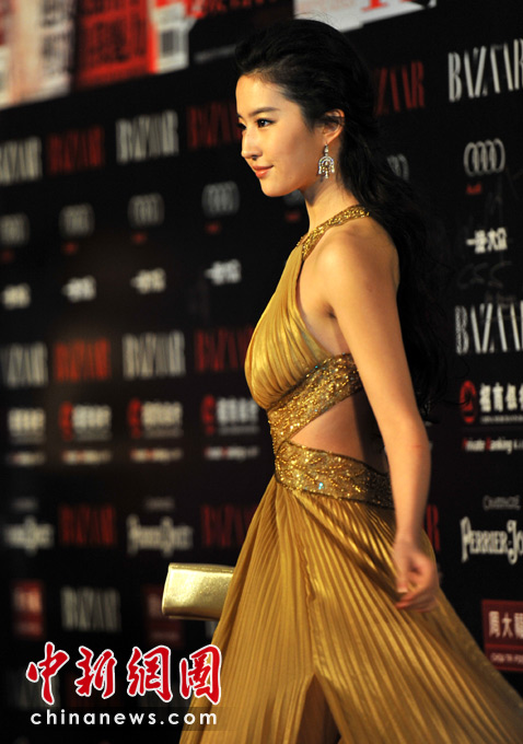 4月25日,由《时尚芭莎》杂志社主办的第8届“BAZAAR明星慈善夜”活动在上海举行,400余名演艺明星、企业精英和社会名流走上红地毯,出席慈善晚宴。图为刘亦菲。 中新网记者 金硕 摄