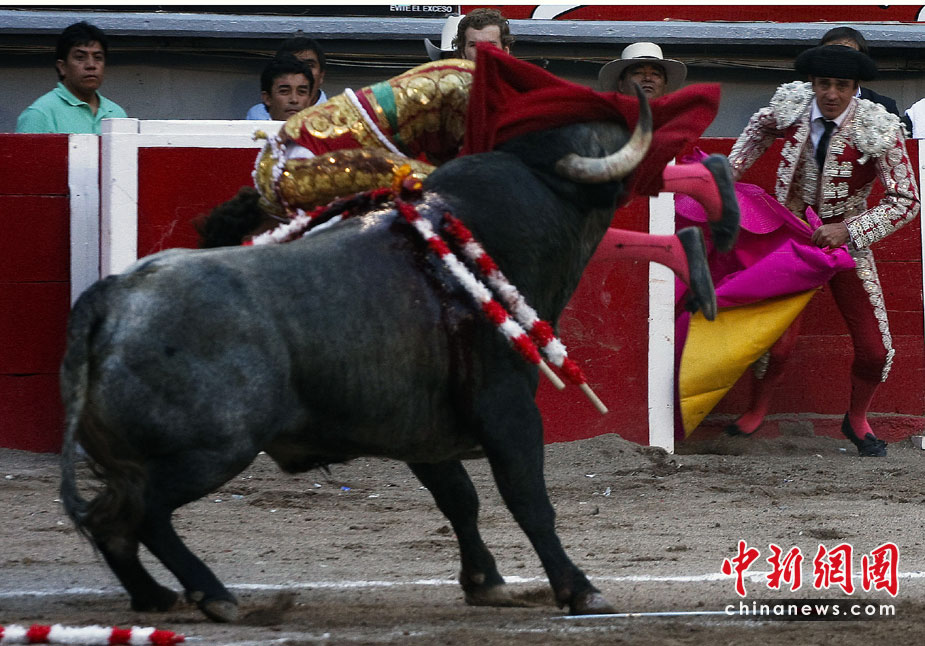 24日,西班牙知名斗牛士何塞·托马斯在墨西哥斗牛时遭一头公牛顶伤,神志不清。