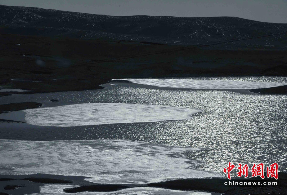 属于长江、黄河、澜沧江三江源地区的青海玉树地震灾区,自然保护区的18个核心区域中,有10个位于玉树州境内,占总面积的72%。4月下旬,记者深入灾区纵深各地,灾后重建正面临保护生态环境、为三江源建起一道生态屏障的难题;近日紧迫的防疫工作,必须使用灭菌效果好、对环境无污染的消毒剂。图为星罗棋布的湖泊正在春风化冰之时。中新社记者 贾国荣摄