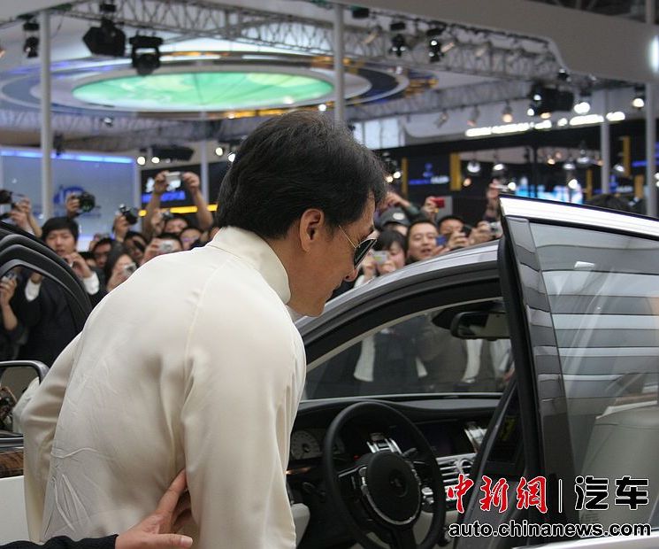 成龙日前亮相了北京车展,引来大批媒体围观。围观的媒体将前门封堵,以至成龙在贵宾室躲藏了10分钟后,在某著名品牌汽车营销副总监的陪同下,才从后门离开会场。 左盛丹/摄