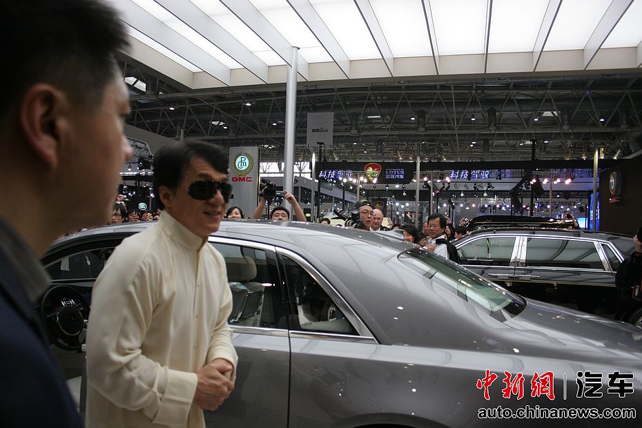 成龙日前亮相了北京车展,引来大批媒体围观。围观的媒体将前门封堵,以至成龙在贵宾室躲藏了10分钟后,在某著名品牌汽车营销副总监的陪同下,才从后门离开会场。 左盛丹/摄