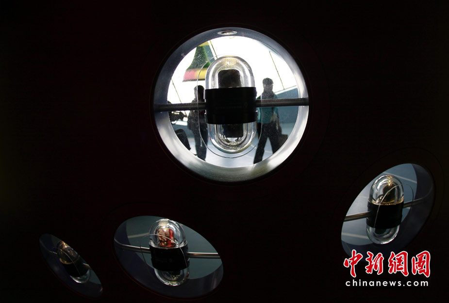 4月27日,人们经过上海世博园德国馆内的展品墙。中新社发 盛佳鹏 摄
