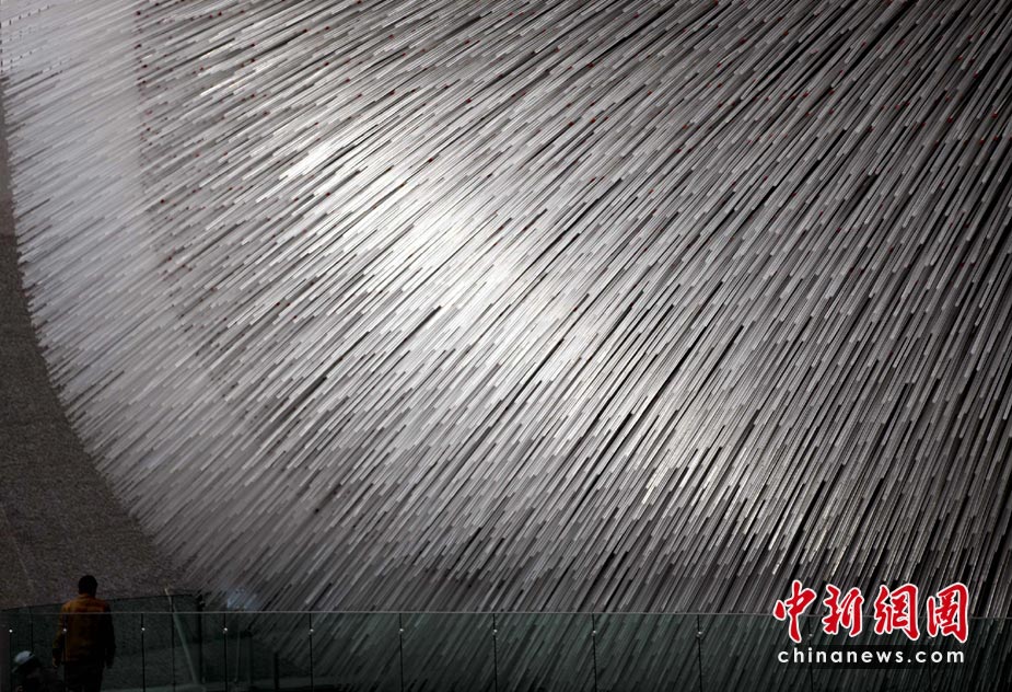 4月27日,上海世博园英国馆,工人抓紧维护展馆设施。中新社发 盛佳鹏 摄