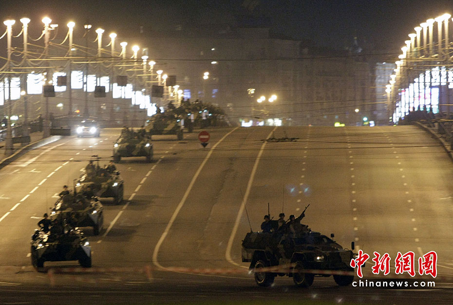 此次红场阅兵包括两部分内容:历史部分和现代部分。历史部分由身穿卫国战争时期军服的士兵在鹅卵石道上进行,同时还会有9辆T-34坦克和8辆SU-100自行火炮。现代部分由13辆老虎装甲车、BTR-80装甲车、BMP-3步兵战车、T-90A坦克和S-400防空系统等。图片来源:中国新闻网