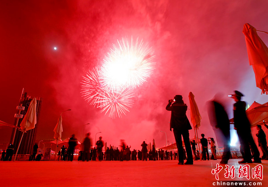4月27日,上海浦西园区世博烟花预演。张栋/CFP