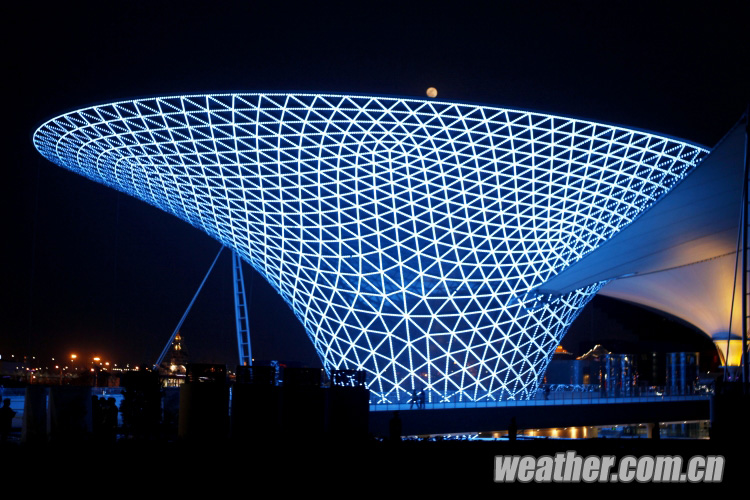 2010年4月27日,上海世博会开幕式彩排顺利进行。图为世博园内中轴线上美丽的世博。卞赟 摄
