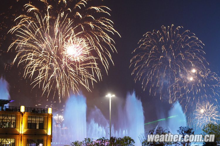 2010年4月27日,上海世博会开幕式彩排顺利进行。图为蓝色喷泉。卞赟 摄