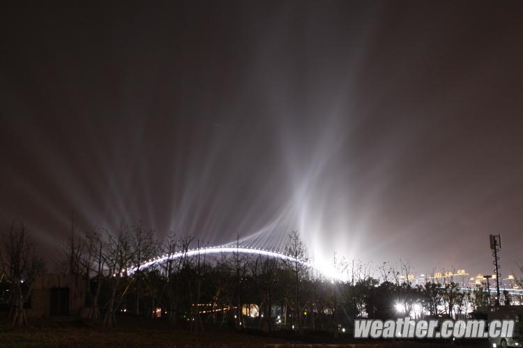 2010年4月27日,上海世博会开幕式彩排顺利进行。图为奇幻的灯光效果。卞赟 摄