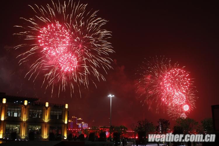 2010年4月27日,上海世博会开幕式彩排顺利进行。图为烟花二重奏。卞赟 摄