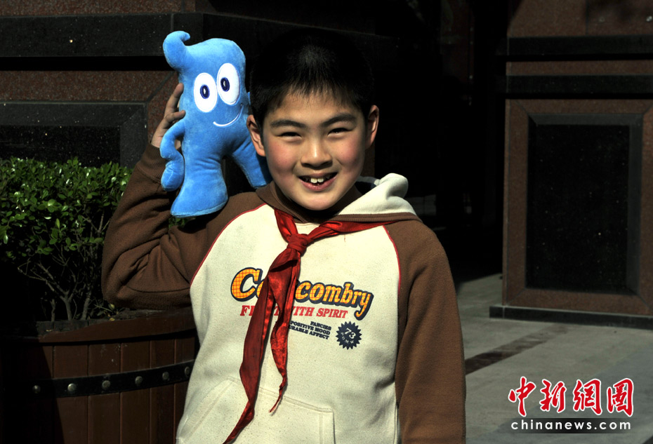在放学回家的路上,陆佳辰对与海宝合影表示出了浓厚的兴趣,对海宝爱不释手。上小学三年级的佳辰表示,非常想去看世博会。