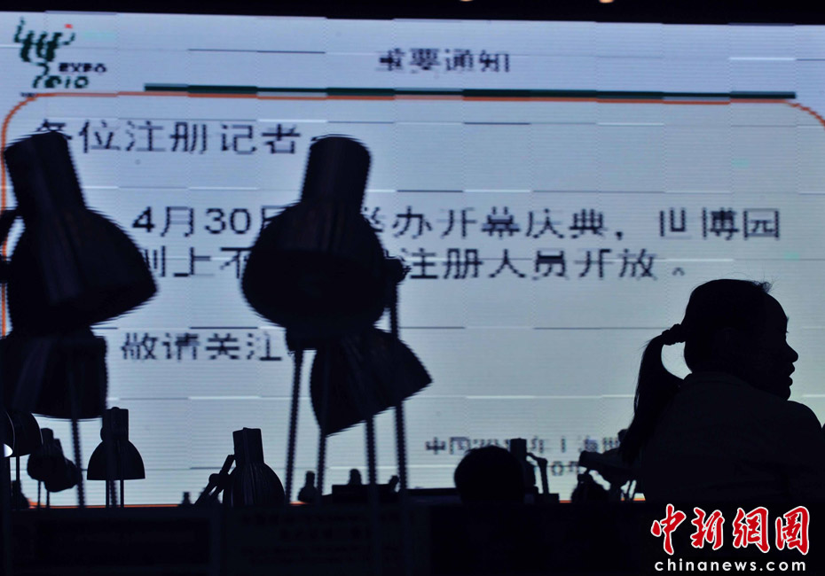 位于上海世博会核心区域的新闻中心,在4月30日开幕前夕崭新启用,连续两天却为有限度的运行,记者们只能在安检门和新闻中心大门之间,封闭在环保大巴里往来,完全没可能出车采访。于是,云集一万多记者的媒体大战,悄然在新闻中心紧锣密鼓地策划谋略之中,“报道战争”将在今晚明天一触即发。