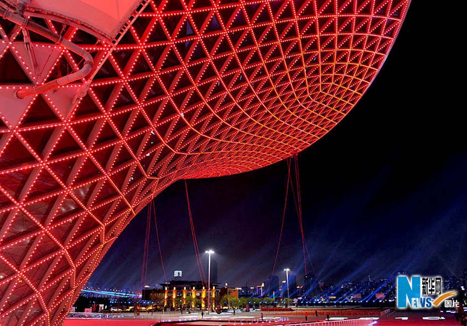 静待开幕的世博园沉浸在一片暮色中,流光溢彩,给人无限遐想。从外滩到世博园,“夜”上海不断延伸,让人激情跳跃。图片来源:新华网孙巍摄