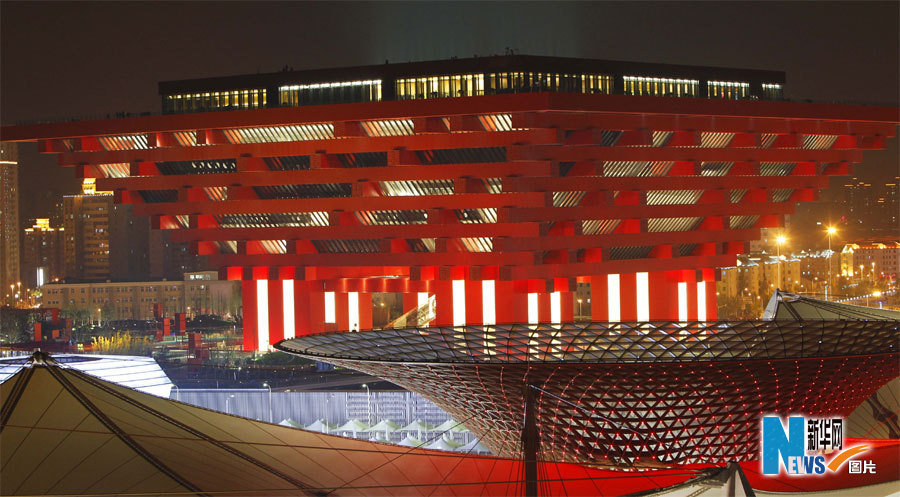 4月30日,中国2010年上海世博会开幕。图为开幕前夕的中国馆亮灯。裴鑫摄
