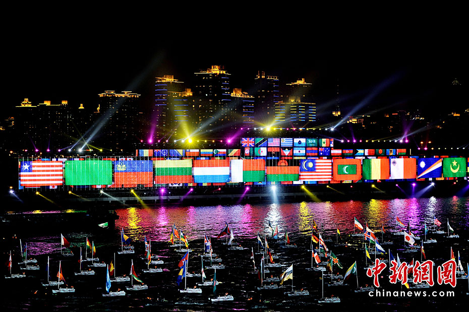 4月30日晚,中国2010年上海世博会开幕式大型灯光喷泉焰火表演在上海举行。图片来源:中国新闻网