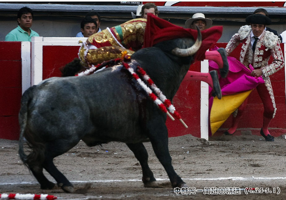 24日,西班牙知名斗牛士何塞·托马斯在墨西哥斗牛时遭一头公牛顶伤,神志不清。图片来源:中国新闻网>>点击观看详细内容