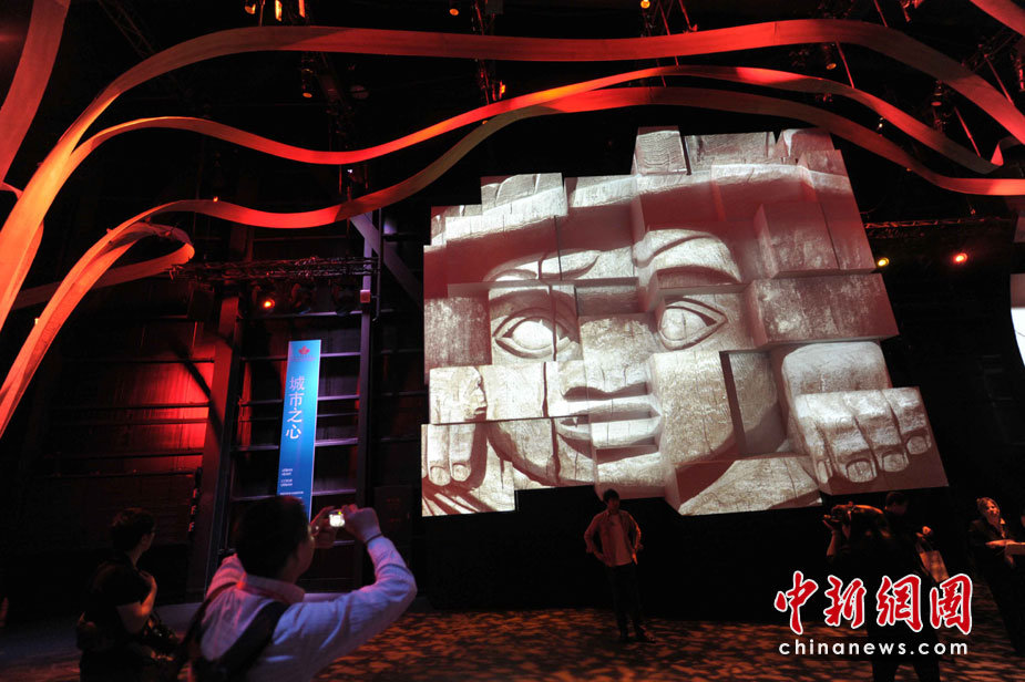 5月1日,上海世博园内的加拿大馆开馆,馆内展出的《城市之心》、《城市印象》《神奇之水》等创意作品给观众留下深刻印象。中新社发 陈文 摄