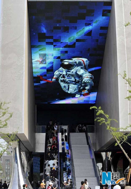 5月1日,上海世博会正式开园迎客,首批游客入园参观。众多游客前往位于上海世博园浦西园区的太空家园馆参观。 朱峥 摄