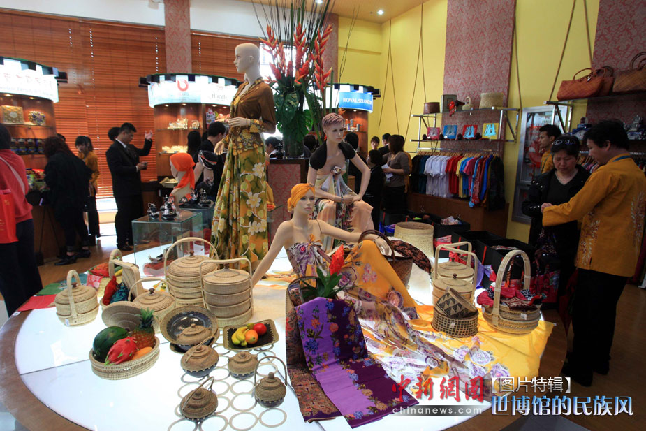 5月1日,上海世博会马来西亚馆开馆,馆内丰富的旅游产品给中国观众带来新奇的购物体验。中新社发 潘索菲 摄