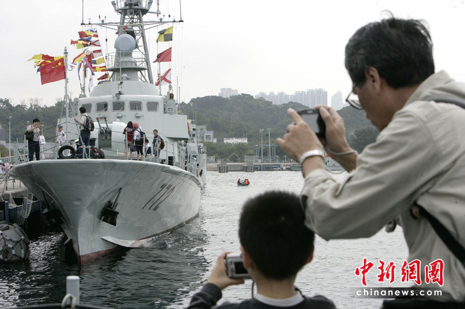 为庆祝“五一”国际劳动节,进一步增进与香港社会各界相互沟通与交流,中国人民解放军驻香港部队5月1日在昂船洲军营举办开放日活动,开放两艘导护艇和两艘登陆艇供市民自由参观。中新社发 张勤 摄