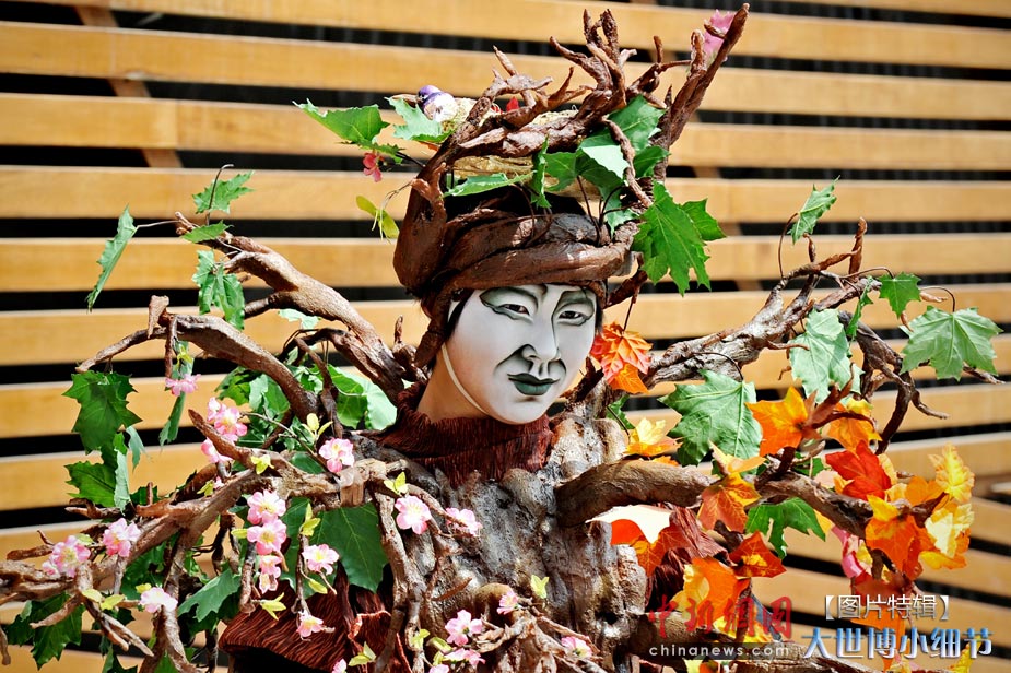 5月1日,上海世博会正式开园,当日有20万人次的游客参观了世博园。世博首日,许许多多的小细节都带给人一种全新的体验。图为在加拿大馆一位扮作大树的表演者。