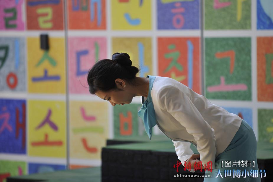 5月1日,上海世博会正式开园,当日有20万人次的游客参观了世博园。世博首日,许许多多的小细节都带给人一种全新的体验。图为韩国馆礼仪小姐以甜美的笑容面对第一批进馆的游客。中新网记者 王红纲 摄