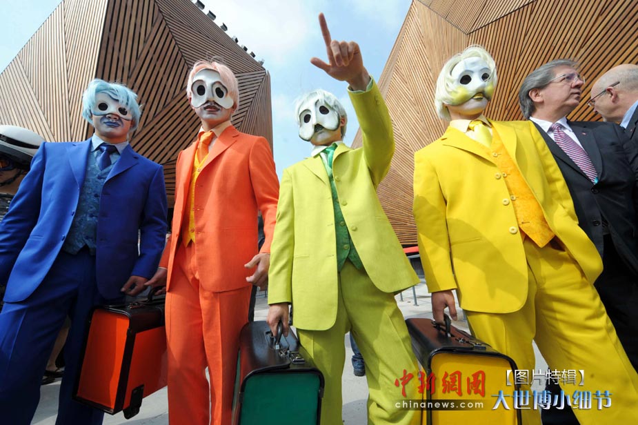 5月1日,上海世博会正式开园,当日有20万人次的游客参观了世博园。世博首日,许许多多的小细节都带给人一种全新的体验。图为加拿大演艺人员幽默登场。中新社发 陈文 摄