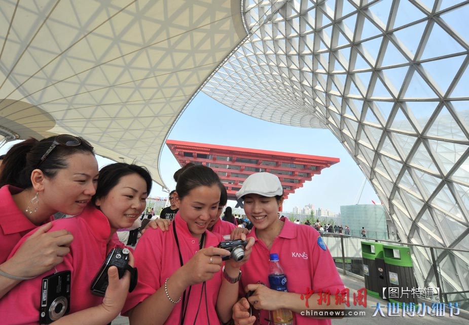 5月1日,上海世博会正式开园,当日有20万人次的游客参观了世博园。世博首日,许许多多的小细节都带给人一种全新的体验。图为游客为在中国馆前找到最佳拍摄位置而喜笑颜开。中新社发 贾国荣 摄