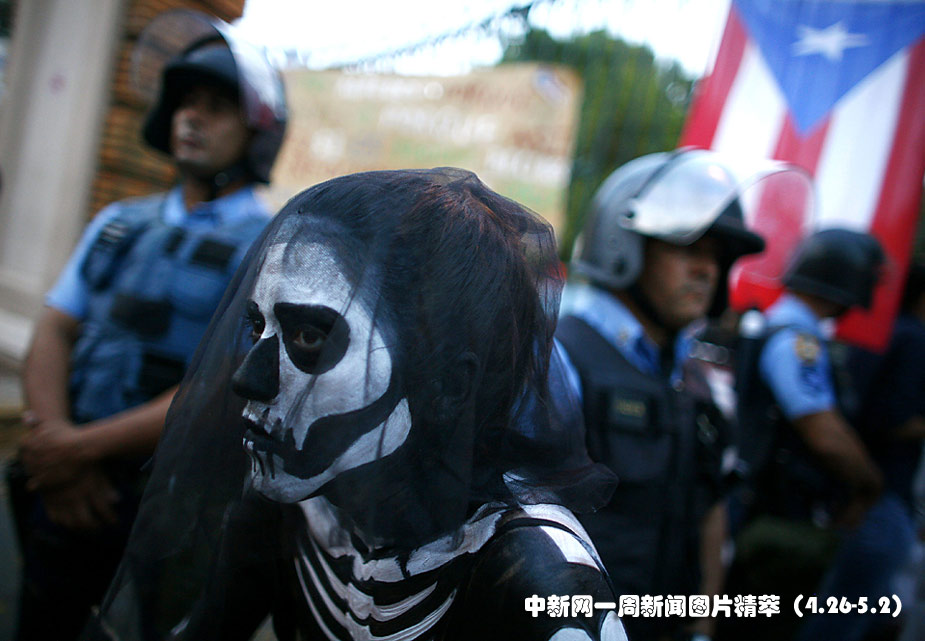 26日(周一),波多黎各,一名学生身穿怪异服饰抗议学费上涨。
