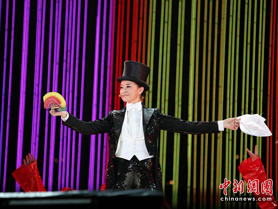图为宋祖英女扮男装表演魔术。王保胜 摄