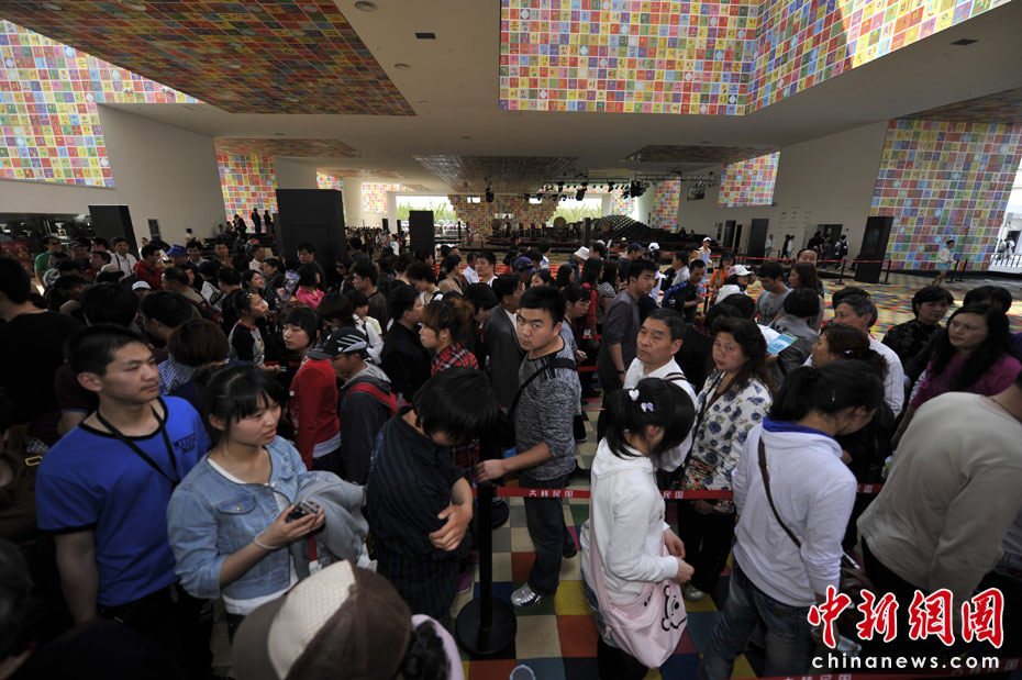 从底层到二层还需要排队,一定要有耐心。中新网记者 王红纲 摄
