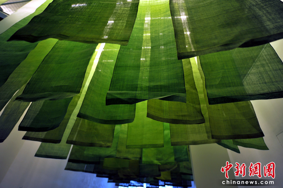 用天然染料染的麻布从天花板垂下,给人置身于美丽草原的感觉。中新网记者 王红纲 摄